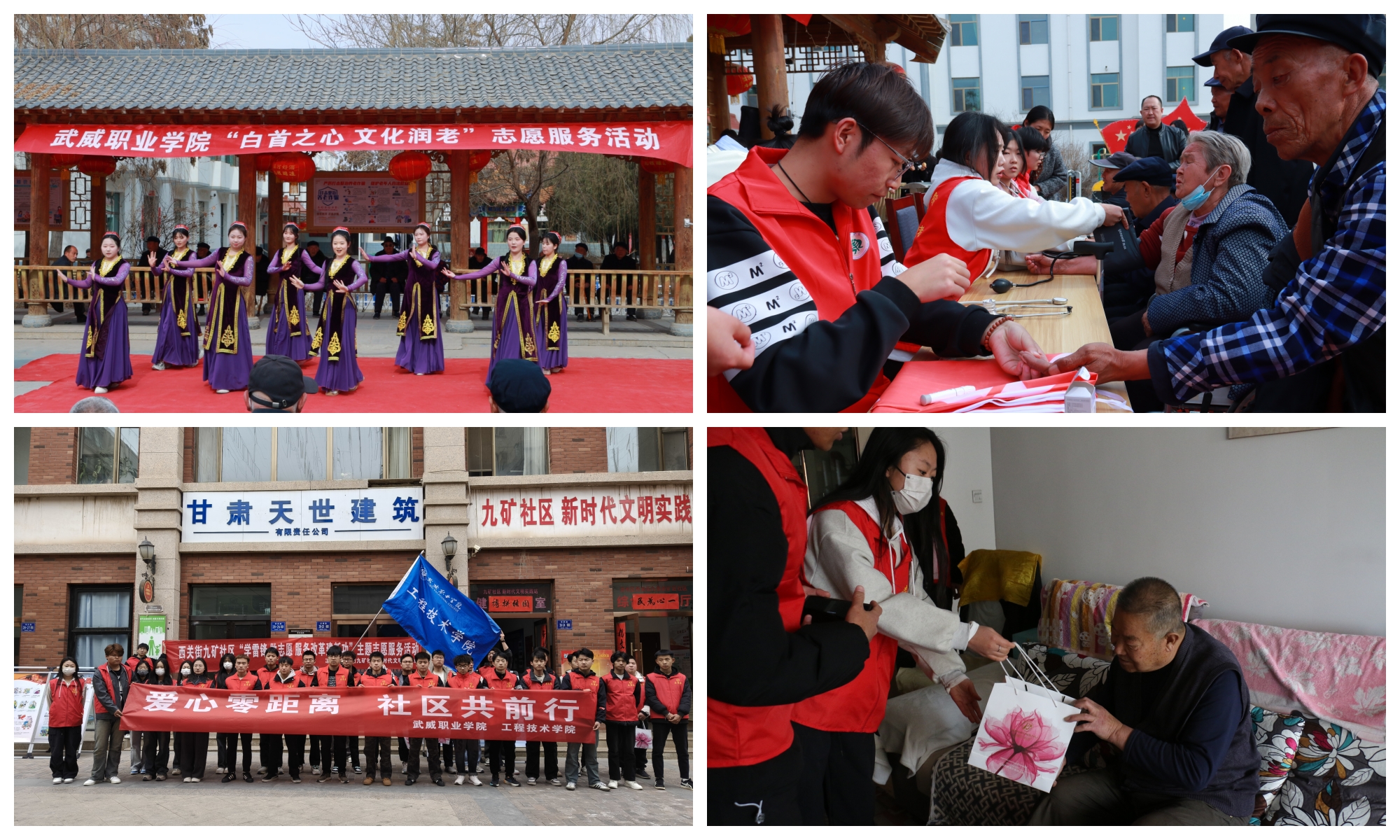 開展愛老敬老志愿服務(wù)活動(dòng)。3月21日,校團(tuán)委組織50余名護(hù)理和學(xué)前教育專業(yè)志愿者,前往涼州區(qū)中心敬老院開展“白首之心·文化潤老”志愿服務(wù)活動(dòng),為老人捐贈(zèng)生活用品和愛心物資,開展文藝表演慰問演出,為老人測量血壓、血糖,告知在日常生活起居中的注意事項(xiàng),以專業(yè)技能守護(hù)老人健康。3月5日,工程技術(shù)學(xué)院35名志愿者走進(jìn)西關(guān)街九條嶺礦區(qū)社區(qū),開展“愛心零距離社區(qū)共前行”志愿服務(wù)活動(dòng),為社區(qū)孤寡老人、獨(dú)居老人和老黨員等特殊家庭送上慰問品,打掃衛(wèi)生、擦拭家具,幫忙照料綠植,并與社區(qū)工作者一起規(guī)范擺放社區(qū)內(nèi)亂停亂放的自行車、電動(dòng)車,清潔窗戶、地面,營造整潔有序的社區(qū)環(huán)境。