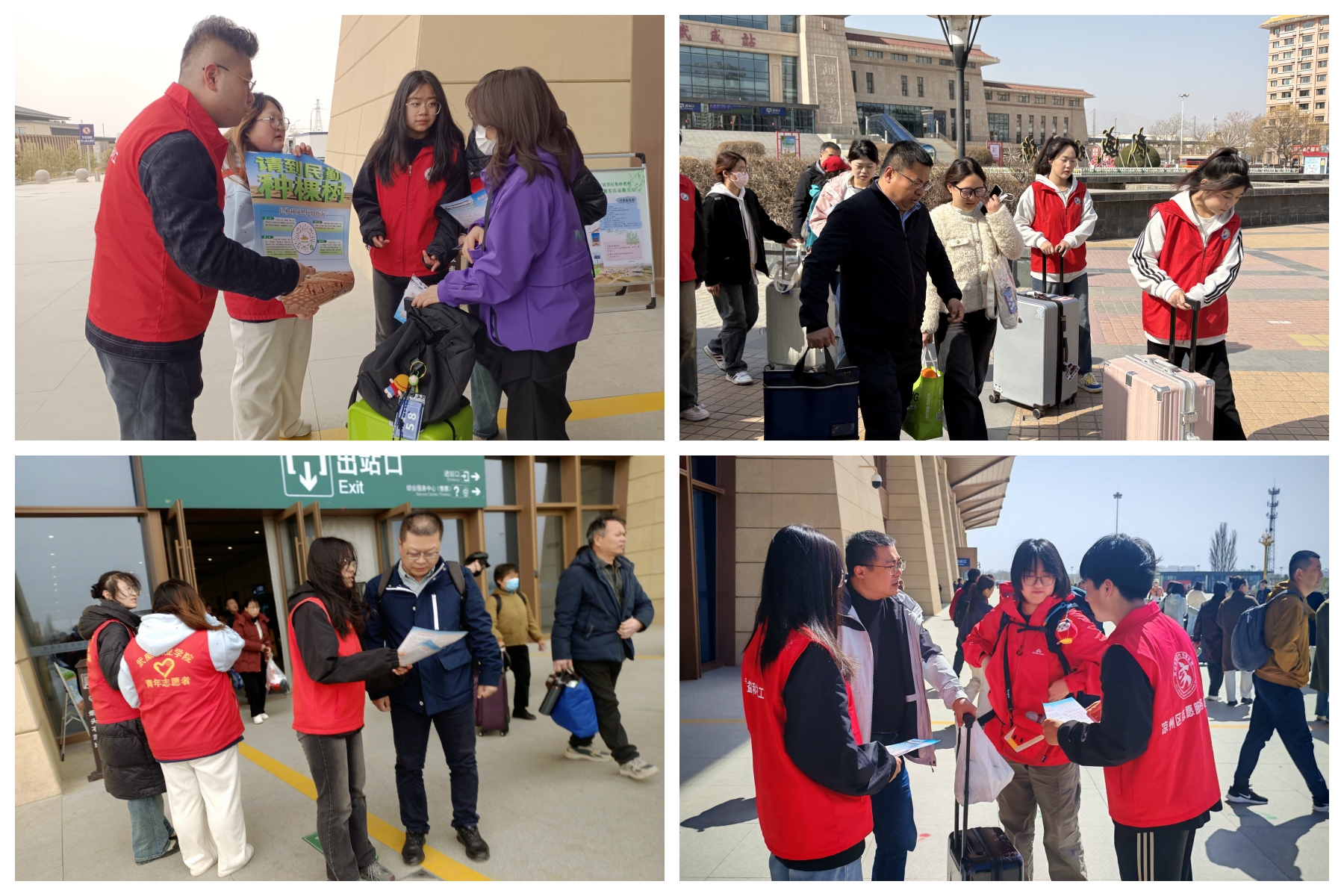 助力“請(qǐng)到民勤種棵樹”活動(dòng)。宣傳統(tǒng)戰(zhàn)部、校團(tuán)委組織志愿者在武威高鐵站、火車站、客運(yùn)中心設(shè)立志愿服務(wù)站,為前來參加“請(qǐng)到民勤種棵樹”活動(dòng)的志愿者們提供引導(dǎo)服務(wù),詳細(xì)告知前往民勤的乘車路線、換乘信息和注意事項(xiàng),協(xié)助搬運(yùn)行李,引導(dǎo)他們有序乘車。