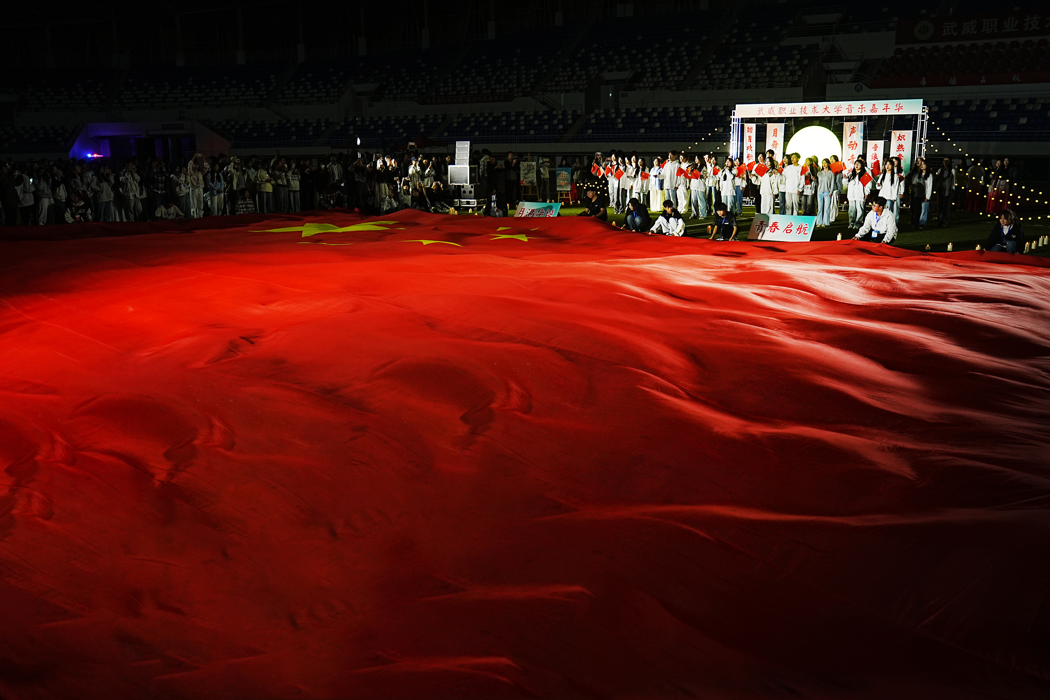 活動(dòng)尾聲,在深情的旋律中,演職人員與觀(guān)眾齊聲合唱《如愿》,深切表達(dá)對(duì)國(guó)泰民安的美好祝愿。巨幅國(guó)旗在師生手中緩緩傳遞、飄揚(yáng)舞動(dòng),匯成一片莊嚴(yán)而溫暖的紅色海洋,將現(xiàn)場(chǎng)氛圍推向最高潮,展現(xiàn)出青年一代與時(shí)代同頻、與祖國(guó)同行的堅(jiān)定信念。