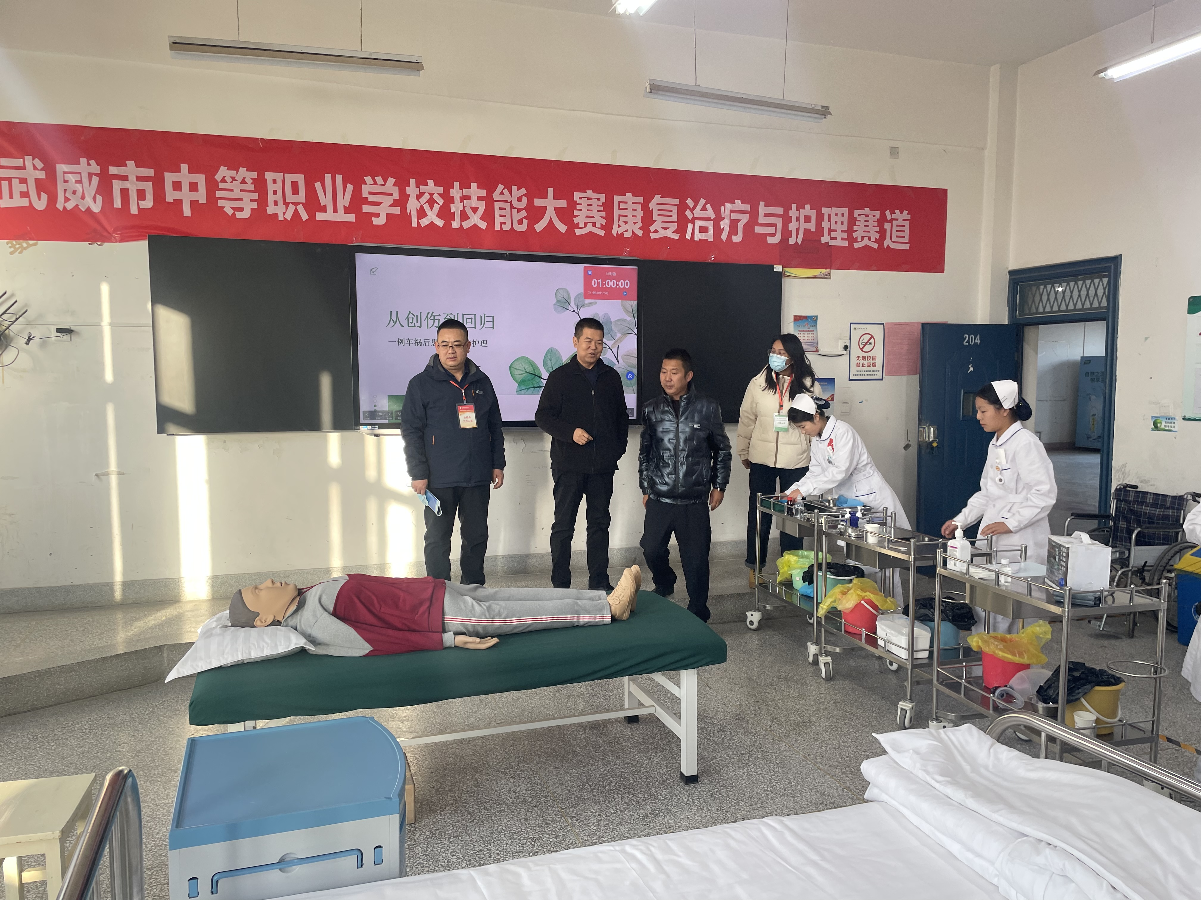 根據(jù)《武威市教育局等五部門關(guān)于印發(fā)2026年武威市中等職業(yè)學(xué)校技能大賽實施方案》和學(xué)校《關(guān)于開展2026年武威市中等職業(yè)學(xué)校技能大賽》的通知精神,由護(hù)理學(xué)院精心承辦的康復(fù)治療與護(hù)理技能賽道、健康養(yǎng)老與嬰幼兒托育賽道賽事順利舉行。來自武威市各中等職業(yè)學(xué)校的82支參賽隊伍300余名選手齊聚賽場,展開了一場專業(yè)技能的巔峰對決。
