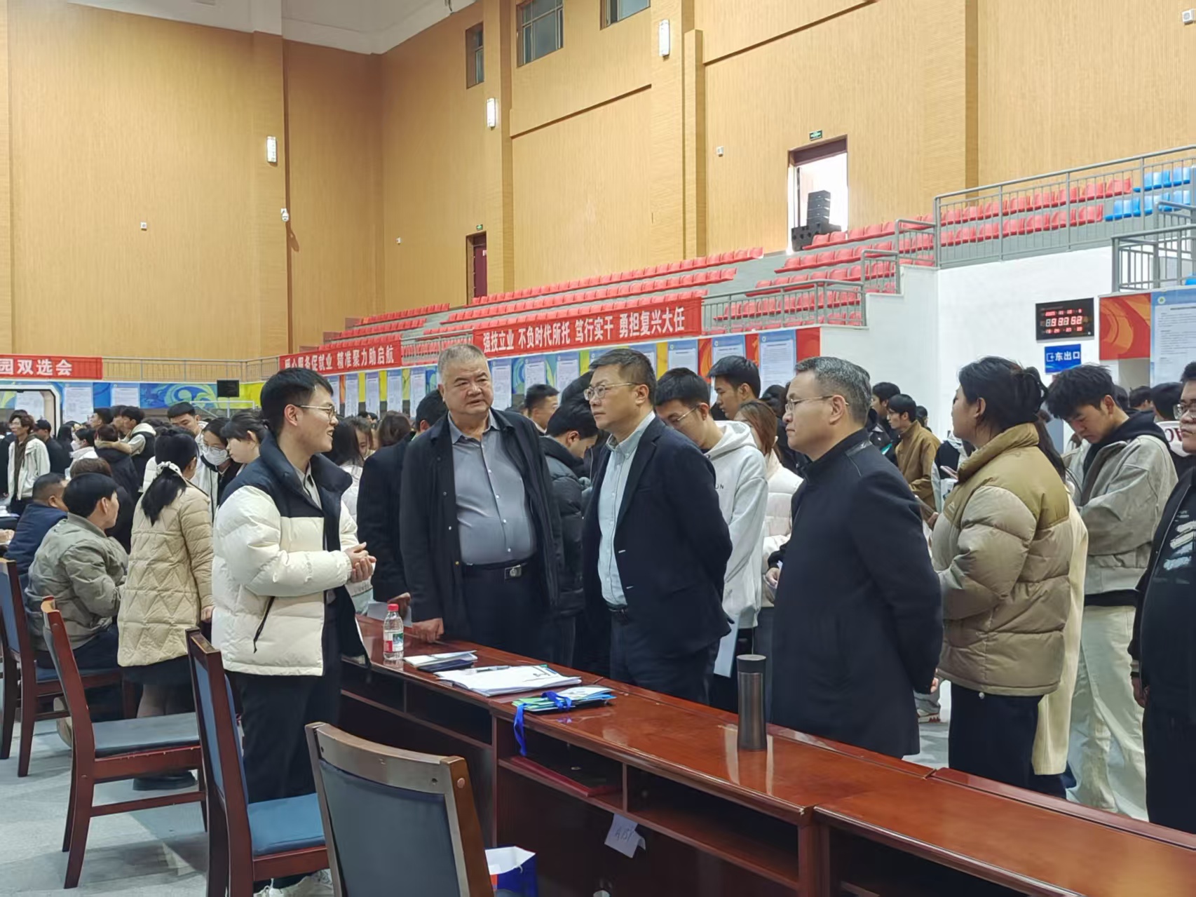11月13日,校園招聘雙選會在學(xué)校體育館隆重舉行。校長李海軍、副校長王守云、伍國強(qiáng)親臨現(xiàn)場指導(dǎo)工作。李海軍詳細(xì)了解本屆畢業(yè)生的招聘需求與市場動向,走訪多家用人單位展位并聽取企業(yè)對學(xué)校人才培養(yǎng)的寶貴意見。同時,與應(yīng)聘學(xué)生進(jìn)行親切交流,勉勵畢業(yè)生們要樹立正確的擇業(yè)觀,立足本職,服務(wù)社會,將個人成長融入國家發(fā)展大局。