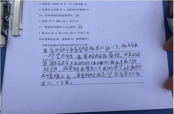 最后志愿者們坐下來相互探討提出建議:父母努力承擔(dān)孩子的教育責(zé)任。父母雖在外,但是還是應(yīng)該采取多種方式,多與孩子的溝通交流,以了解孩子的生活、學(xué)習(xí)、情感變化,比如多用電話聯(lián)系。父母是孩子的第一任老師,因此父母的教育是對孩子影響最大的,因此父母應(yīng)該多關(guān)心孩子,如果不能?;丶遥瑒t應(yīng)該向孩子的老師說明自己的情況,了解子女的發(fā)展變化,以共同商討教育孩子的策略和方法。同時(shí)也要加強(qiáng)關(guān)愛留守兒童的各類社會(huì)宣傳。充分發(fā)揮各媒體的作用,使更多的人加入到對留守兒童教育問題的研究中來,使各界各類人士共同來探討和研究,從而使留守兒童教育問題得到切實(shí)的解決。