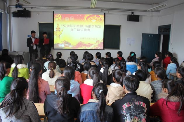10月25日、26日組織學(xué)生觀看大型紀(jì)錄片《長(zhǎng)征》,通過(guò)了解紅軍長(zhǎng)征勝利的歷史故事,體會(huì)紅軍長(zhǎng)征精神,抒發(fā)對(duì)革命先烈的敬仰之情,在感人的故事中回顧革命歷史,感恩幸福生活。10月31日晚,在博學(xué)樓612舉行了以“弘揚(yáng)長(zhǎng)征精神、助推學(xué)院發(fā)展”為主題的演講比賽。通過(guò)不同形式的活動(dòng),號(hào)召同學(xué)們弘揚(yáng)長(zhǎng)征精神,從小做起,從一點(diǎn)一滴做起,為中華民族的復(fù)興而努力學(xué)習(xí),讓紅軍精神在莘莘學(xué)子中傳承。