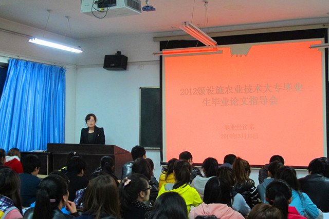 根據(jù)設施農(nóng)業(yè)技術專業(yè)人才培養(yǎng)方案要求,結(jié)合國家骨干校項目建設任務,為了提高2014屆設施農(nóng)業(yè)技術專業(yè)畢業(yè)生畢業(yè)論文(設計)質(zhì)量,農(nóng)業(yè)經(jīng)濟系于3月16日晚召開了“2014屆大專畢業(yè)生畢業(yè)論文指導會”。全系教師及2012級設施農(nóng)業(yè)技術大專(1)、(2)班81名同學參加了本次會議。