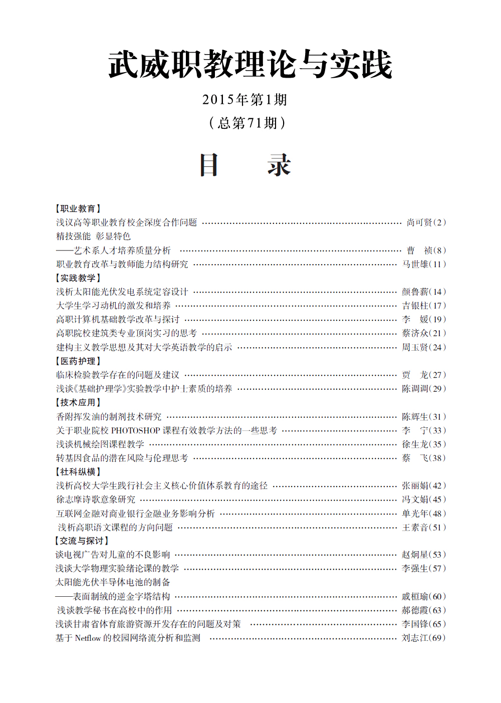 2015年《武威職教理論與實踐》目錄