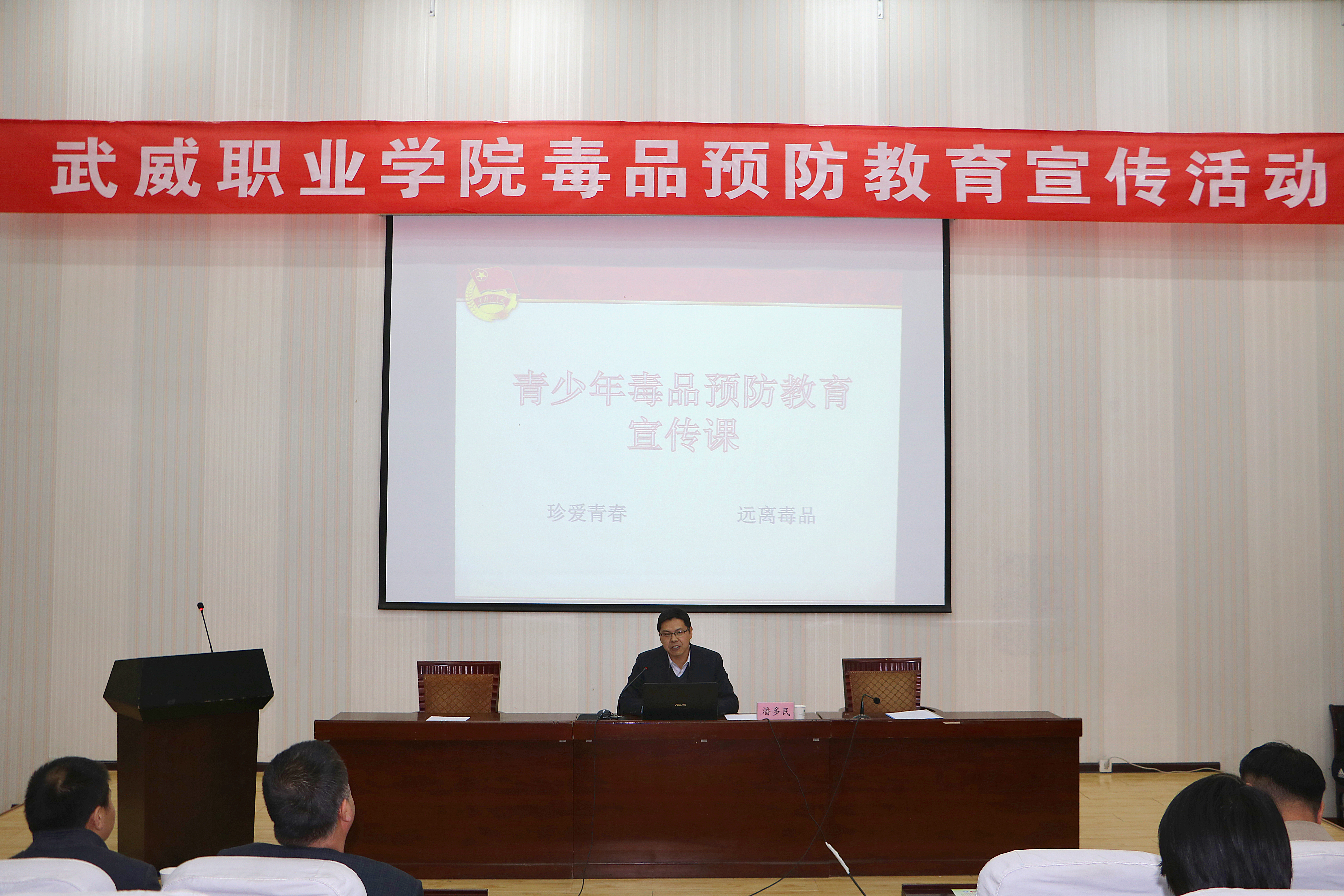 3月30日下午,院團委聯(lián)合學生工作處、保衛(wèi)處在正德廳舉辦武威職業(yè)學院毒品預防教育宣傳活動,團市委書記潘多民出席活動并授課,學院各級團干部270多人參加了活動。活動由學生工作處處長王守云主持。