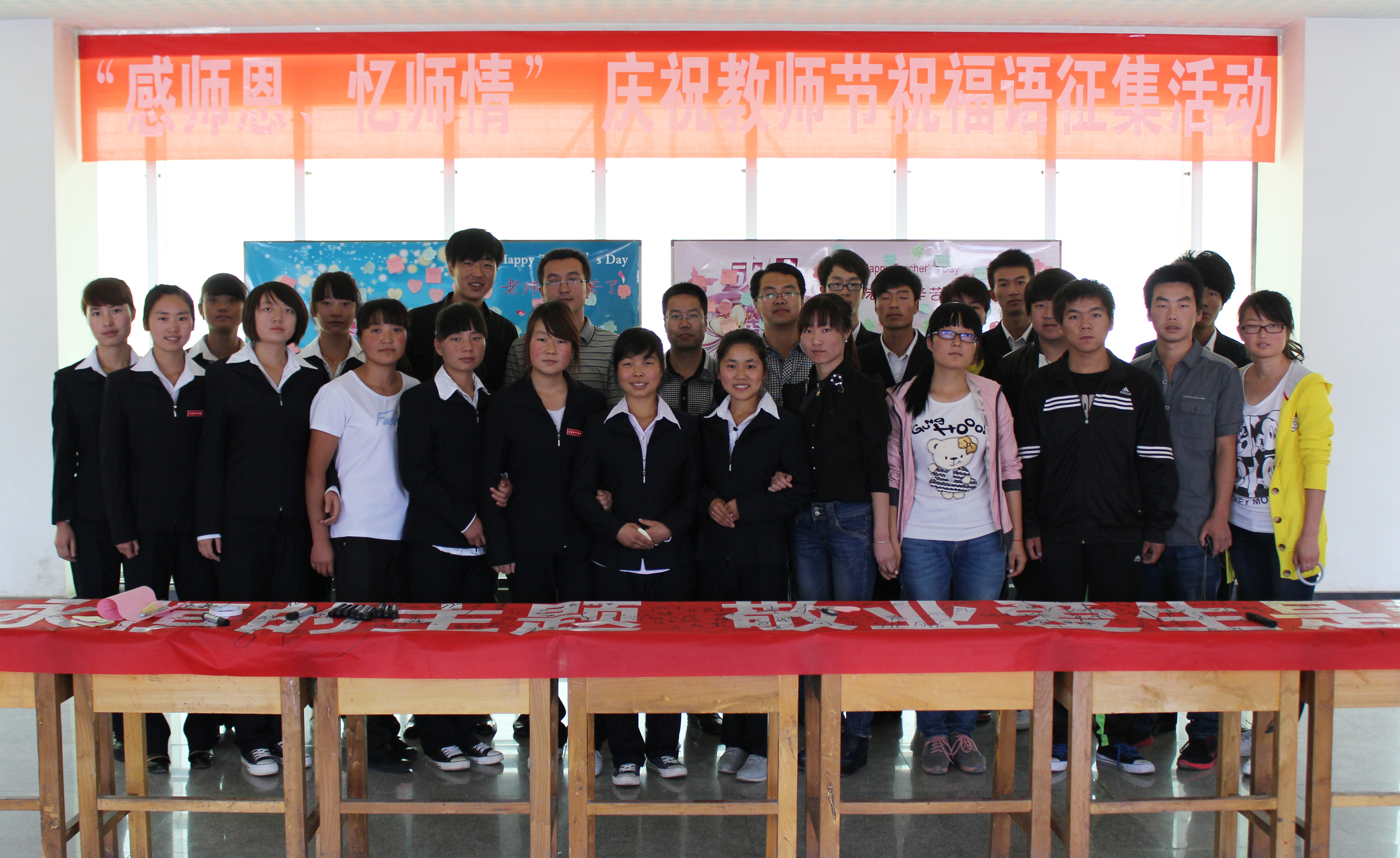 又是金秋九月,第29個(gè)教師節(jié)踏著輕盈的腳步緩緩而來。 今天,電子信息工程系舉辦“感師恩、憶師情”慶祝教師節(jié)祝福語征集暨師生簽名活動(dòng)。早晨七點(diǎn)三十分,活動(dòng)在一聲聲“老師,您辛苦了!祝您教師節(jié)快樂!”的祝福中拉開帷幕。上午十點(diǎn),電子信息工程系全體教師和300多名學(xué)生在一號(hào)教學(xué)樓三樓參加了主題簽名儀式,并將祝??ㄙN在主題海報(bào)上。