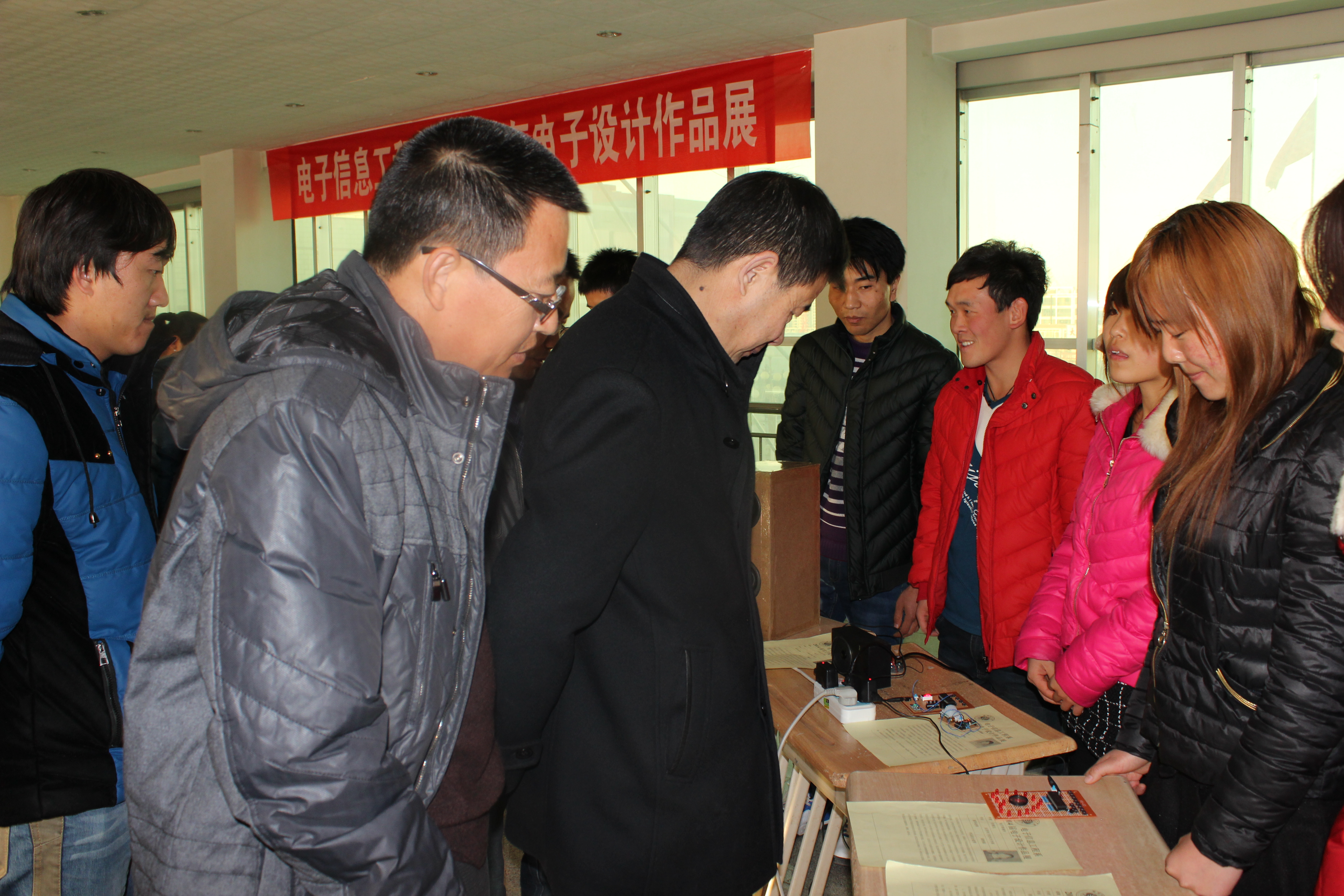 為豐富大學(xué)生課余生活,使更多的同學(xué)了解電子,走進(jìn)電子,培養(yǎng)學(xué)生對電子產(chǎn)品的興趣及實際操作能力,近日,我系成功舉辦電子制作與設(shè)計作品展。學(xué)院翟存祥副院長,教務(wù)處魏潤明處長,電信系蔣偉主任、張伯成書記蒞臨展區(qū)詳細(xì)詢問了電子作品設(shè)計與制作情況。