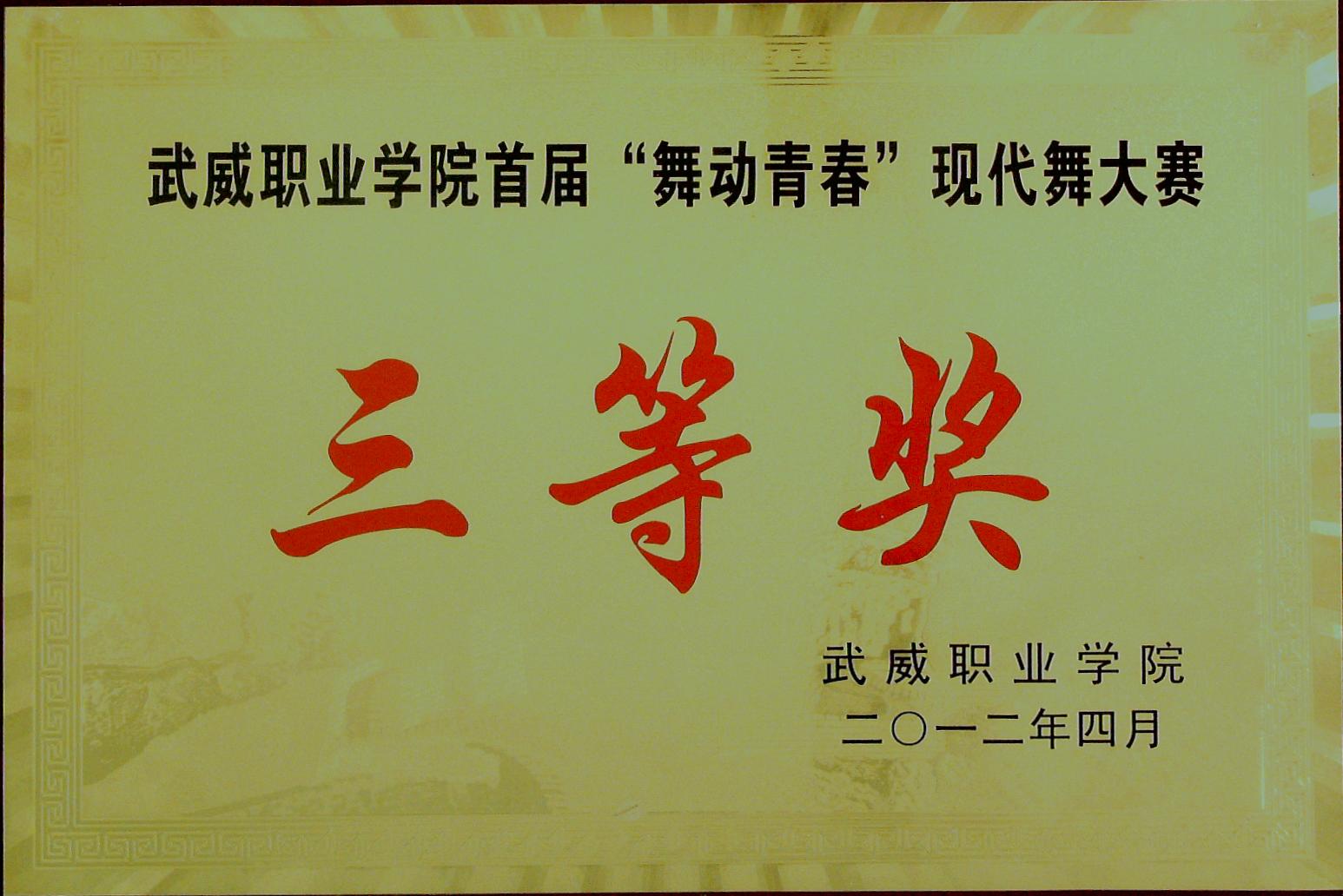 首屆“舞動青春”現(xiàn)代舞大賽三等獎