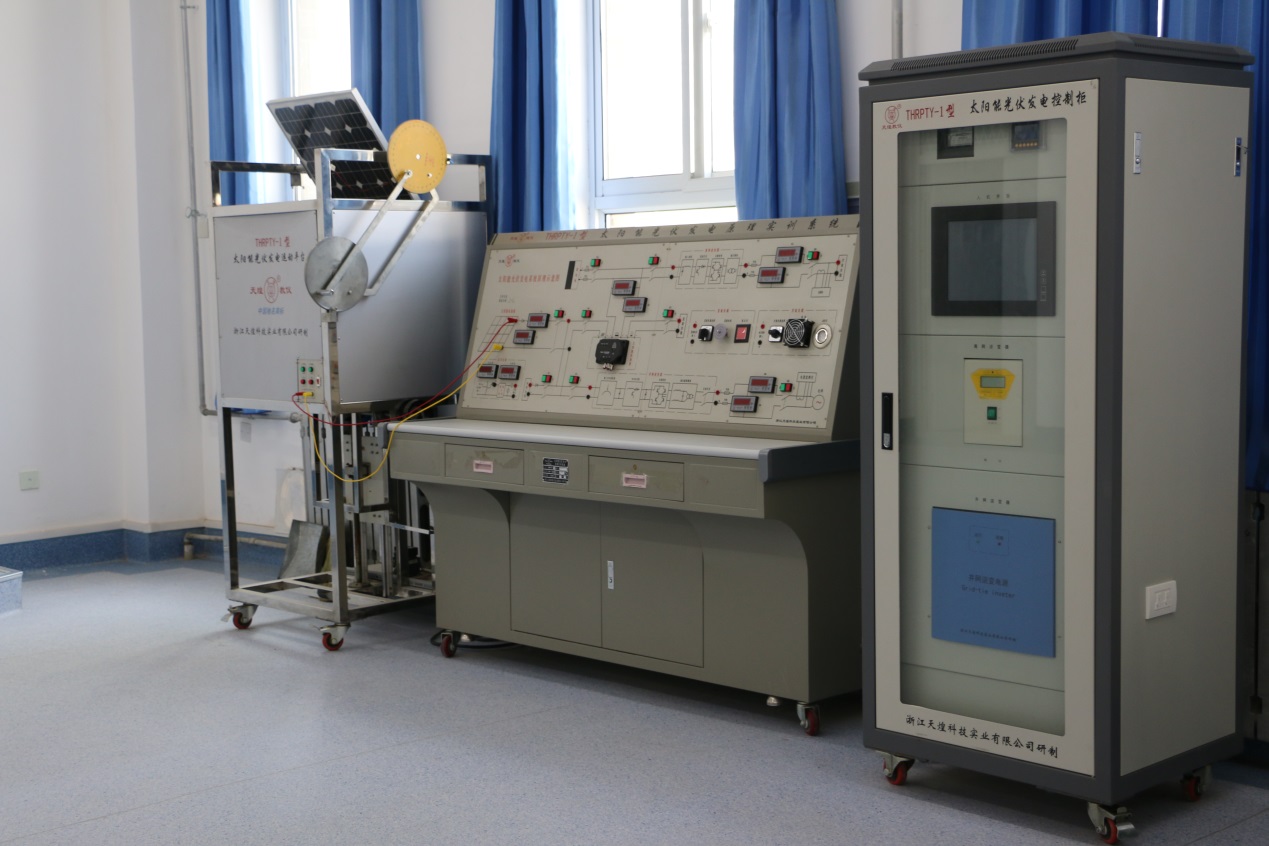 實(shí)訓(xùn)功能:本實(shí)訓(xùn)室擁有金相教學(xué)顯微鏡、X射線晶體定向儀、電池特性測試儀、太陽光伏材料電阻特性測量實(shí)驗(yàn)裝置、太陽輻射電流表、總輻射表、經(jīng)濟(jì)性純水器等設(shè)備共31臺(套)。主要服務(wù)課程為光伏發(fā)電技術(shù)分析與應(yīng)用、光伏控制器拆裝與維修等。