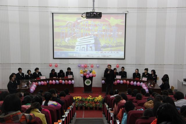 2012年11月7日晚,學院東階梯教室燈火輝煌,座無虛席。經(jīng)過組委會師生的精心籌備,經(jīng)濟管理系第五屆大專生百科知識競賽決賽在廣大師生的期盼中順利拉開了帷幕。學院副院長王永緒、教務(wù)處處長魏潤民、學生處處長潘從民、院團委副書記王政、經(jīng)濟管理系主任邸光才、黨總支書記白玉珍及經(jīng)濟管理系全體老師出席了決賽。