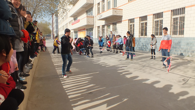 隨著蔡柱山宣布運(yùn)動(dòng)會(huì)正式開始的指令發(fā)出,拔河決賽立刻在熱烈的氣氛中拉開了架勢(shì),進(jìn)入決賽的班級(jí)在裁判的指導(dǎo)下迅速進(jìn)入指定位置,各班同學(xué)紛紛加油助威,運(yùn)動(dòng)場(chǎng)上氣氛頓時(shí)被調(diào)動(dòng)起來(lái)了。根據(jù)賽程安排,籃球賽、“15人跳繩”、乒乓球賽等集體和單人的各項(xiàng)比賽依次有序進(jìn)行,特別是跳繩比賽,參與面廣,同學(xué)們都積極投入其中,感受到運(yùn)動(dòng)的樂(lè)趣和團(tuán)結(jié)的力量。