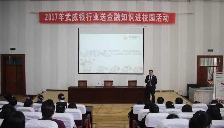 為幫助同學(xué)們了解和掌握銀行業(yè)消費常識,增強科學(xué)合理使用銀行產(chǎn)品和服務(wù)的能力,提升同學(xué)們對金融業(yè)務(wù)的風(fēng)險防范和識別能力,5月11日下午,經(jīng)濟(jì)管理系與甘肅銀行武威分行、郵政儲蓄銀行武威市分行在學(xué)院正德廳聯(lián)合開展了“銀行業(yè)送金融知識進(jìn)校園”宣講活動。經(jīng)濟(jì)管理系會計電算化、證券與期貨專業(yè)的350余名同學(xué)參加了此次宣講會。