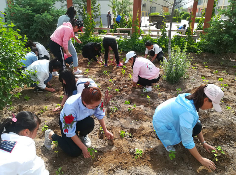5月23日,現代農業(yè)技術系2016級學生開始校園綠化“栽花活動”。同學們開溝、定植、覆土、灌溉,動作熟練,干勁十足。
