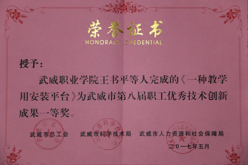 為貫徹落實(shí)武威市委、市政府關(guān)于《武威市十萬(wàn)職工職業(yè)技能素質(zhì)提升活動(dòng)工作方案(2016-2020年)》(武政辦發(fā)〔2016〕72號(hào))文件精神,推動(dòng)我市“雙創(chuàng)”工作的深入開(kāi)展,激發(fā)我市廣大企事業(yè)職工提升技能和開(kāi)拓創(chuàng)新的熱情。近日,由市總工會(huì)、市人社局、市科技局等單位聯(lián)合舉辦了“武威市第八屆職工技術(shù)創(chuàng)新成果評(píng)選活動(dòng)”。本屆職工技術(shù)創(chuàng)新成果評(píng)選共征集創(chuàng)新成果87項(xiàng),其中:學(xué)院推薦了十項(xiàng)研究課題、專利技術(shù)項(xiàng)目,王書(shū)平團(tuán)隊(duì)《一種教學(xué)用安裝平臺(tái)》項(xiàng)目成果榮獲一等獎(jiǎng),申賓德團(tuán)隊(duì)《簡(jiǎn)易焊工考試用帶坡口鋼板火焰切割下料機(jī)的研究與應(yīng)用》,王勝團(tuán)隊(duì)《“胰美舒”治療2型糖尿病周?chē)窠?jīng)病變(氣陰兩虛兼瘀證)的臨床觀察》項(xiàng)目成果榮獲三等獎(jiǎng)。