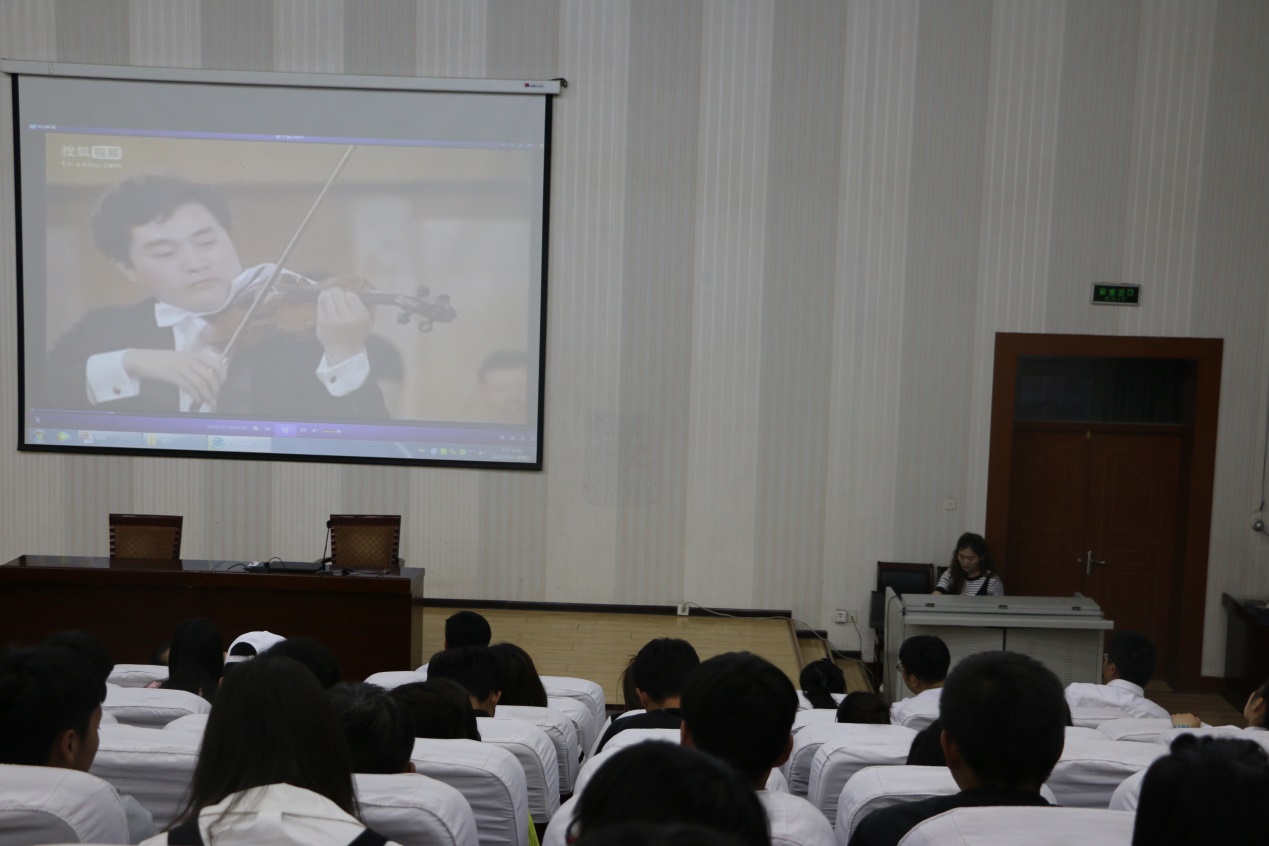 伴著優(yōu)美的音樂旋律王敏副教授開始了講座,王老師首先介紹了音樂發(fā)展歷史和音樂鑒賞的基礎(chǔ)知識,然后以我國著名作曲家陳鋼、何占豪先生創(chuàng)作的小提琴協(xié)奏曲《梁山伯與祝英臺》為題材,分階段講述了“鳥語花香”、“草橋結(jié)拜”、“英臺抗婚”、“投墳化蝶”等內(nèi)容和藝術(shù)場景。剖析了作品在管樂、和以小提琴、大提琴為主的弦樂及民樂有機(jī)結(jié)合的高超藝術(shù)境界,講座過程中王老師結(jié)合《梁?!穮f(xié)奏曲音視頻資料,演繹了梁山伯與祝英臺凄美的愛情故事。