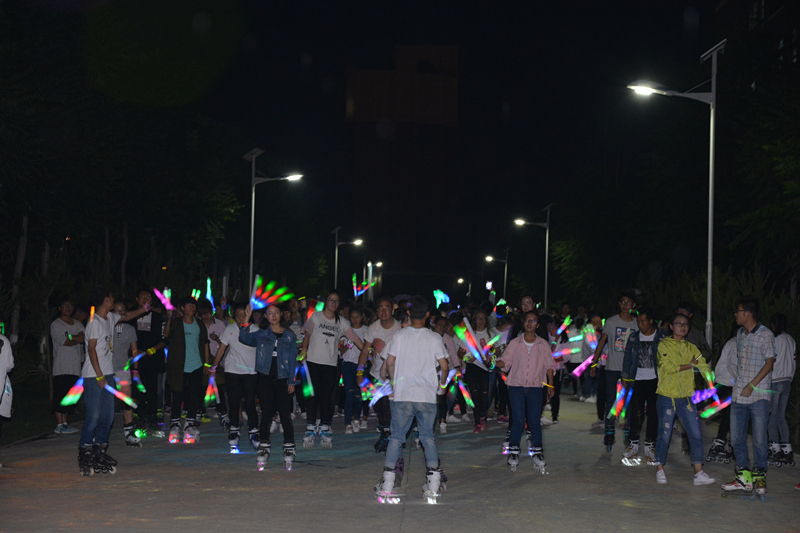 下午三點(diǎn),學(xué)院團(tuán)委宋文龍老師在啟動(dòng)儀式上做了熱情洋溢的致辭,團(tuán)學(xué)干部帶領(lǐng)參賽選手開(kāi)啟了本次活動(dòng)的奔跑。本次活動(dòng)由“趣味沖關(guān)”“彩虹跑”“熒光夜跑”三個(gè)環(huán)節(jié)組成。“趣味沖關(guān)”由一系列小游戲組成,需要大家齊心協(xié)力、互相配合完成,同學(xué)們滿懷激情,在奔跑的同時(shí)體驗(yàn)著合作的趣味與快樂(lè)。掌聲、笑聲、加油聲此起彼伏,選手與觀眾互動(dòng)交流,整個(gè)過(guò)程充滿了愉悅的氣氛。下午五點(diǎn)開(kāi)啟了整個(gè)活動(dòng)中最精彩的“彩虹跑”,同學(xué)們手捧玉米粉在慢跑中相互揮灑,多彩的玉米粉在他們身上留下了青春的印記。隨著夜幕降臨,精彩的“熒光夜跑”活動(dòng)隨之開(kāi)始,同學(xué)們手帶熒光環(huán),舞動(dòng)熒光棒,在輪滑社成員的帶領(lǐng)下繞著校園跑動(dòng)。熒光點(diǎn)綴著夜色,歡快的音樂(lè)、青春的聲音充斥著整個(gè)校園?;顒?dòng)結(jié)束后,在學(xué)院東門小廣場(chǎng)舉行了自由晚會(huì),同學(xué)們圍成一圈,在主持人的帶動(dòng)下做互動(dòng)小游戲、自由演唱,一陣陣歡聲笑語(yǔ)回蕩在整個(gè)校園。
