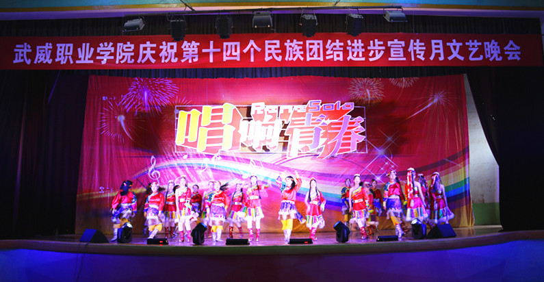晚會(huì)在氣勢(shì)恢宏的藏族舞中拉開(kāi)帷幕,回族的花兒、蒙古族傳統(tǒng)舞蹈、藏族的龍頭琴?gòu)棾瑹崆樗苹鸬挠《任?,你方唱罷我登場(chǎng),將晚會(huì)一次次推向高潮。爭(zhēng)奇斗艷的民族服飾,嘹亮高亢的歌聲,輕盈歡快的舞姿,歡笑陣陣的小品,充滿(mǎn)民族風(fēng)情的精彩節(jié)目為在座師生送上了一場(chǎng)視聽(tīng)盛宴。