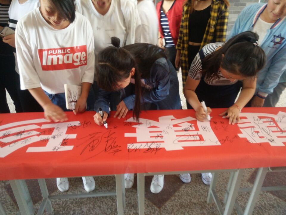 5月22日 ,系團(tuán)學(xué)會制作橫幅標(biāo)語“關(guān)注健康、珍愛生命”,召集簽名活動。