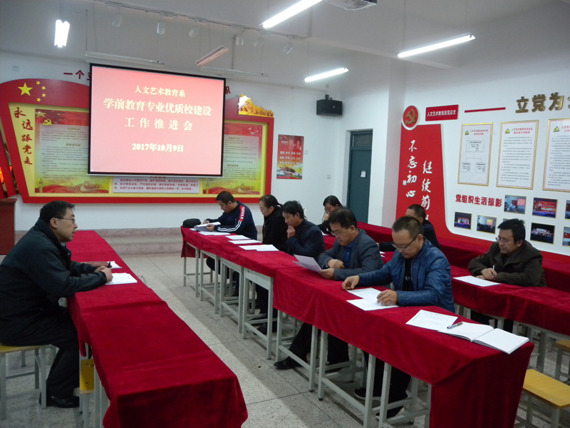 為了進一步推進學(xué)院優(yōu)質(zhì)高職院校建設(shè),人文藝術(shù)教育系于10月9日下午在勵勤樓209會議室召開了學(xué)前教育專業(yè)優(yōu)質(zhì)校建設(shè)推進會。會議由系黨總支書記胡靜峰主持,人文藝術(shù)教育系學(xué)前教育專業(yè)建設(shè)項目組全體成員參加。
