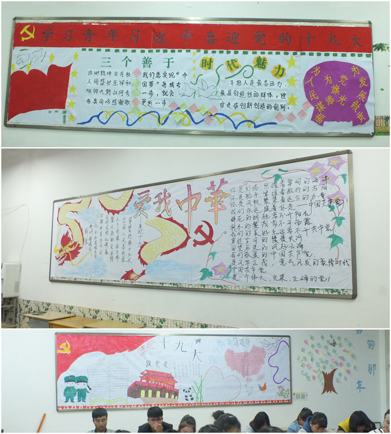 在黨的十九大即將召開之際,為進(jìn)一步深化“中國夢”和“社會主義核心價值觀”主題教育,增進(jìn)我系學(xué)生的愛國熱情和團(tuán)結(jié)意識,營造良好的校園文化氛圍,引導(dǎo)學(xué)生準(zhǔn)確把握中國夢的本質(zhì)屬性,將個人夢想融入中國夢中,自覺增強奮斗拼搏精神,積極踐行社會主義核心價值觀,10月10日,經(jīng)我系黨總支研究決定,由系團(tuán)總支負(fù)責(zé),各班團(tuán)支部開展“學(xué)習(xí)青年習(xí)近平,喜迎黨的十九大”為主題的黑板報評比活動。