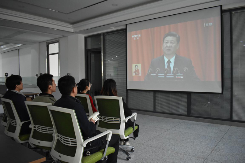 10月18日上午9時,雙創(chuàng)中心負責人胡建宏在行樹樓210會議室與學院部門負責人集中觀看了黨的十九大開幕會盛況,其他兩位教師孟建文、司玲帶領學生在雙創(chuàng)中心辦公室收看開幕會盛況和習近平總書記的報告,認真學習領會十九大精神。
