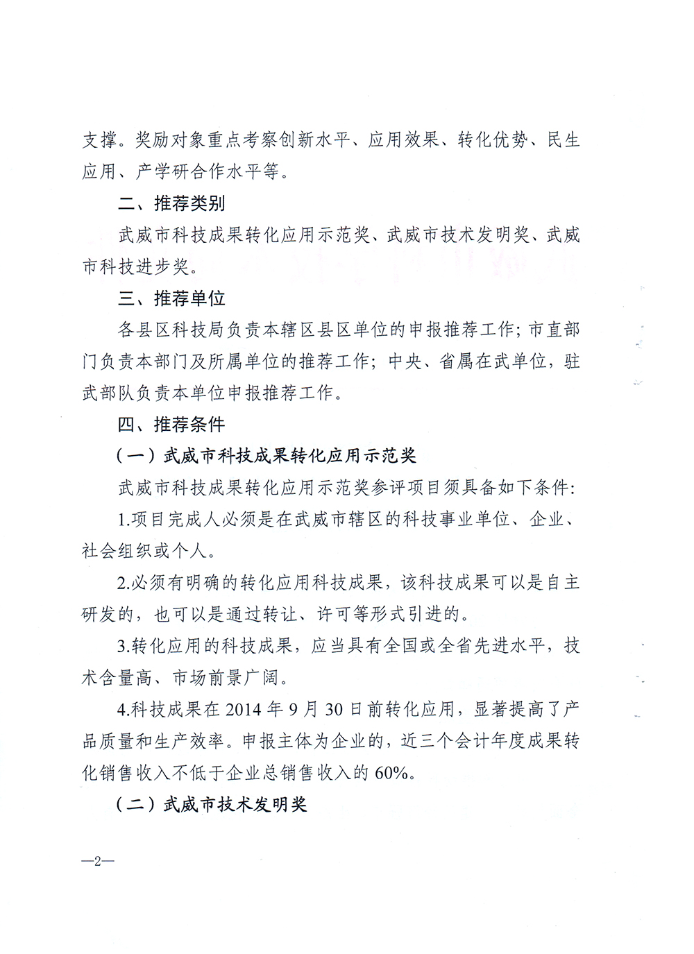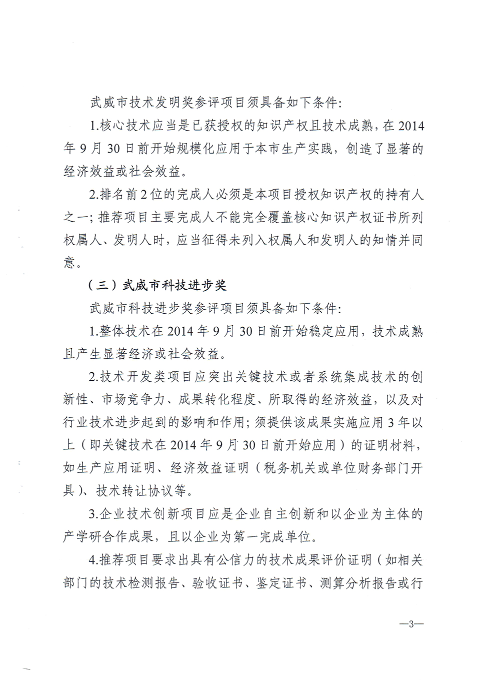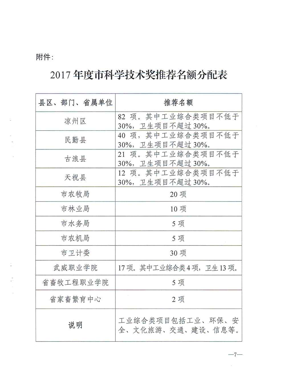 轉發(fā)武威市科學技術局關于做好2017年度市科學技術獎推薦工作的通知