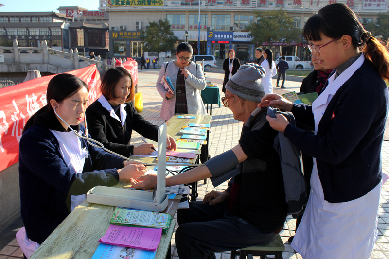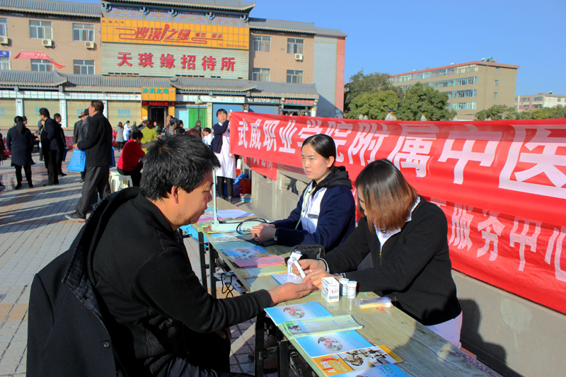 11 月1日,為配合2017年甘肅衛(wèi)生計(jì)生題材劇目秦腔《皇甫謐》在武威成功上演,根據(jù)市衛(wèi)生計(jì)生委安排,直屬附屬醫(yī)院派出醫(yī)生李生海、護(hù)士許海燕等醫(yī)務(wù)人員組成的醫(yī)療小分隊(duì),與其他10余家醫(yī)療衛(wèi)生單位的醫(yī)務(wù)人員一道,在武威南城門廣場(chǎng)開(kāi)展便民義診服務(wù)活動(dòng)。