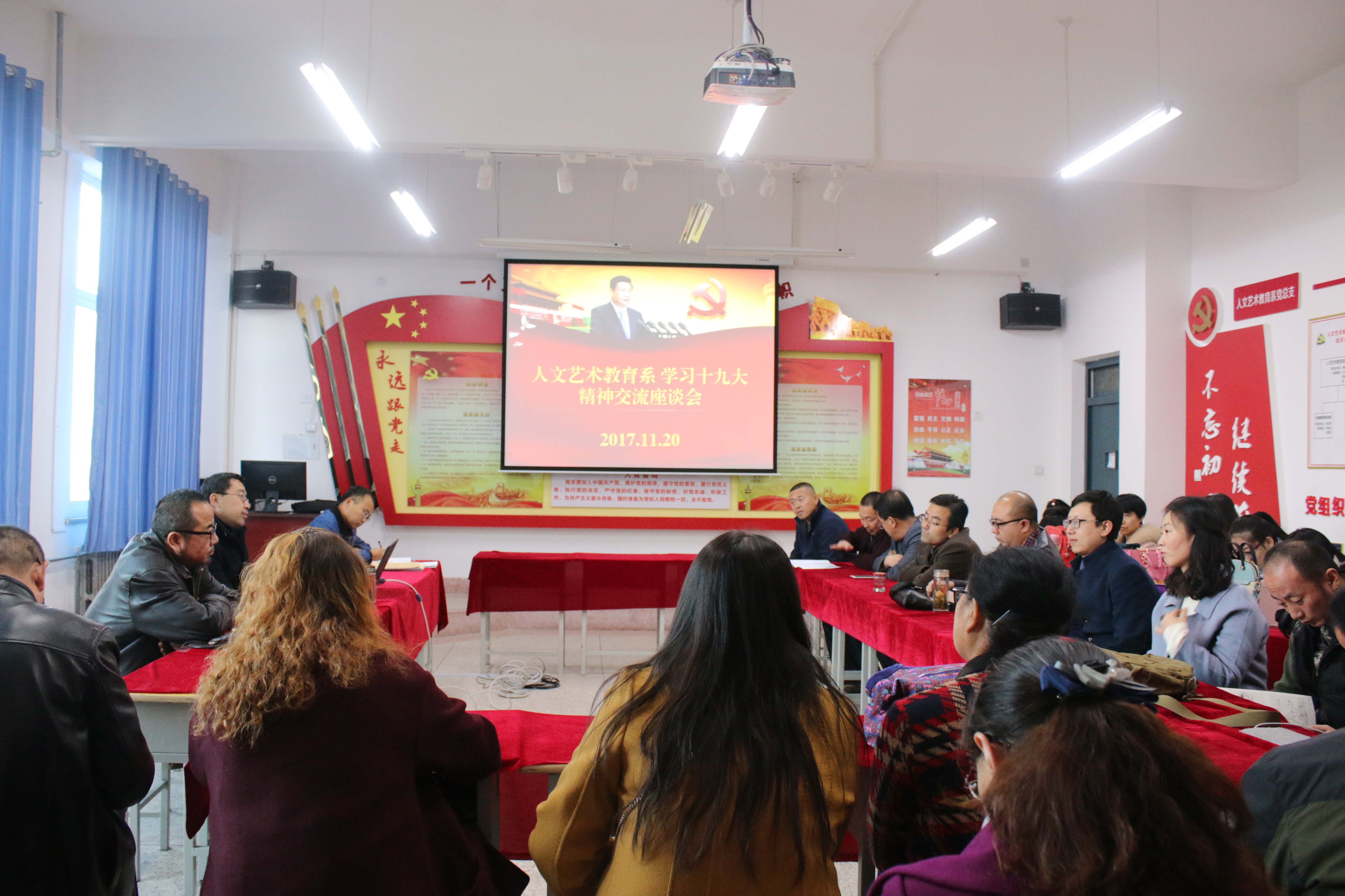11 月20,人文藝術教育系黨總支召開了“學習黨的十九大精神 促進我系教育發(fā)展”專題座談會。會議由人文藝術教育系黨總支書記胡靜峰同志主持,系全體教師參加座談會。