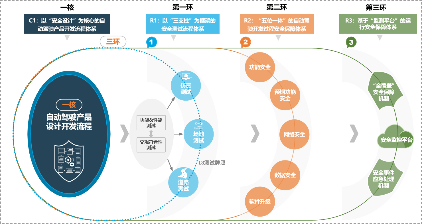 北汽集团是中国最早布局自动驾驶技术的车企之一,早在2018年,北汽的越野车队列全无人自动驾驶就亮相世界智能网联汽车大会。依托多年的技术积累和开放合作,北汽集团在今年的世界智能网联汽车大会期间,正式推出专属的智能网联技术体系——“北汽元境智能”,打造一套涵盖从底层到体验、从真实世界到仿真世界的技术架构,构建起“一核三环”智能网联汽车安全开发保障体系。“一核”即以“体系保障安全”为核心理念,建立以安全设计与验证为导向的开发流程体系;“三环”即测试验证保障、过程安全保障、运行监测保障的三重覆盖产品全生命周期的安全防护体系。此次L3准入试点不仅是对北汽产品安全水平的考核,更是对北汽系统性安全体系建设成果的严格检验。