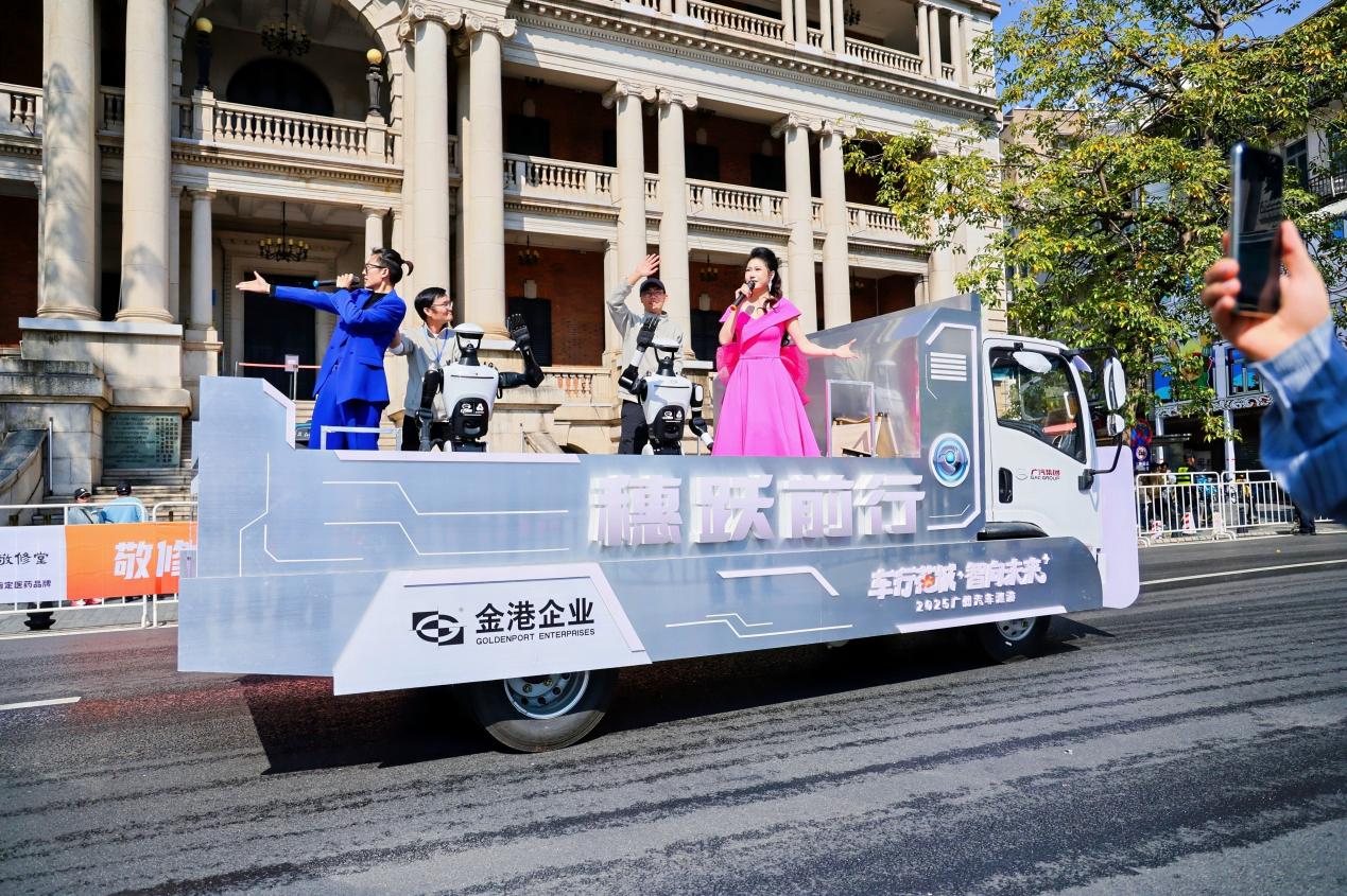 值得一提的是,本次巡游统一使用广汽领程轻卡作为三台领航花车载体,在车尾搭建简洁的开放式表演平台,形成“复古—现代—未来”三段式视觉叙事。
