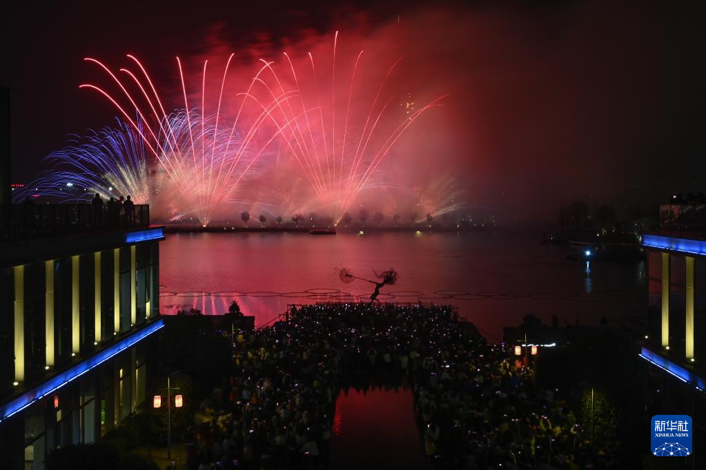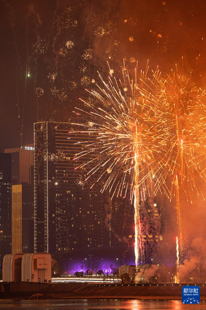 当晚,“迎亚运、庆元宵”烟花灯光秀在浙江杭州举行。