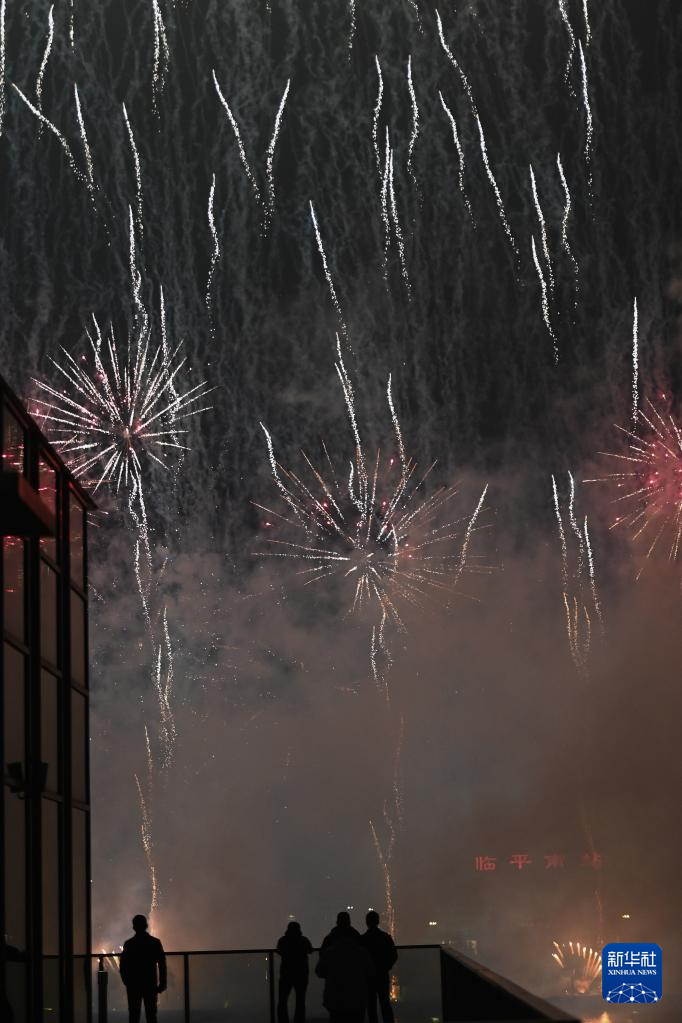 2月5日,市民在杭州市临平区东湖公园观看“迎亚运、庆元宵”烟花秀。