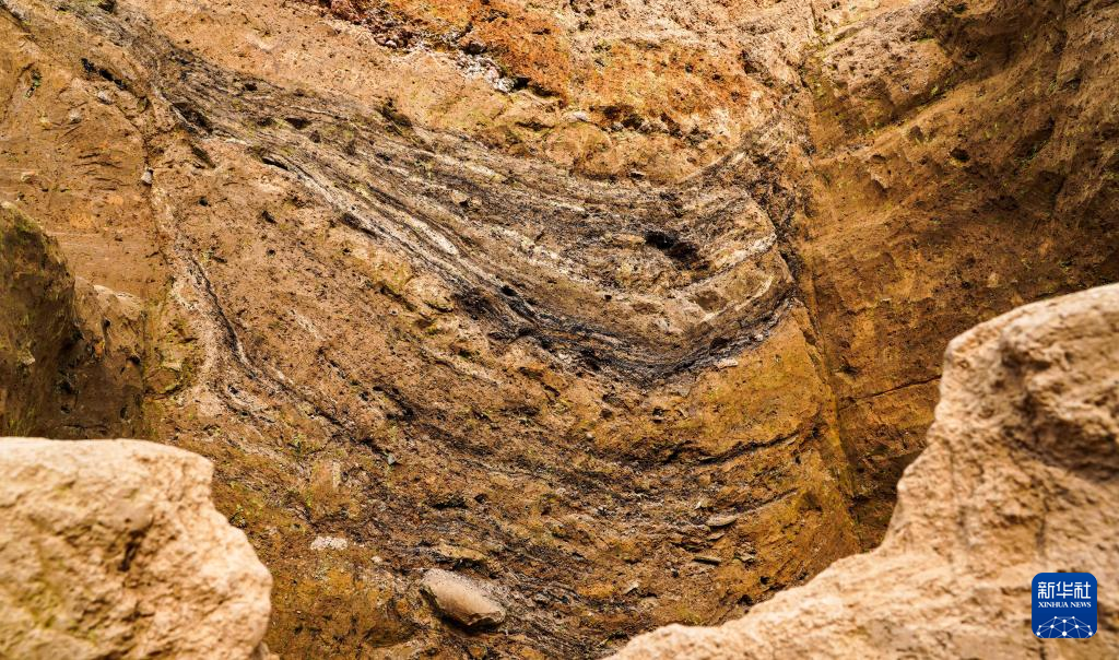 这是2月28日在洛阳苏羊遗址考古现场拍摄的人工环壕内的文化堆积层。