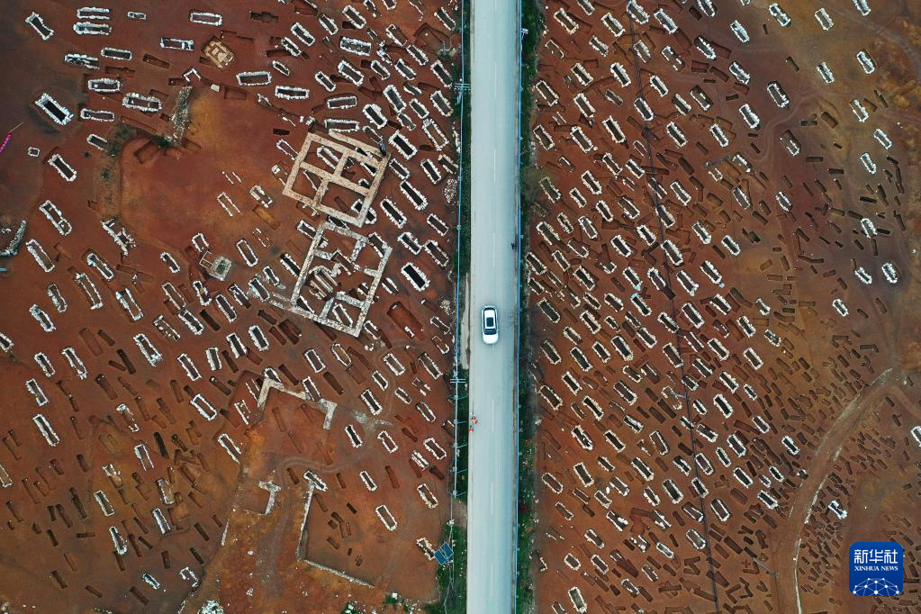 3月30日拍摄的贵州贵安新区大松山墓群挖掘现场(无人机照片)。