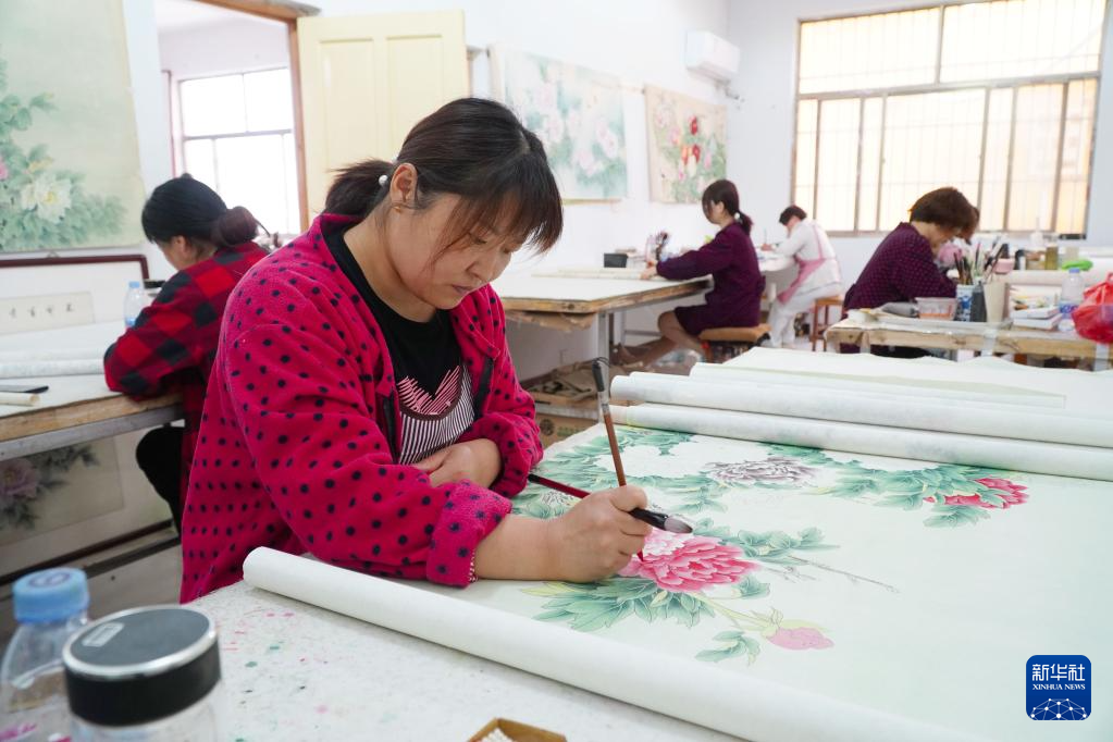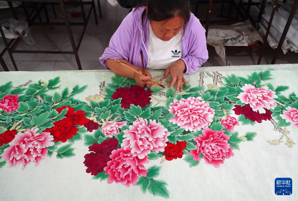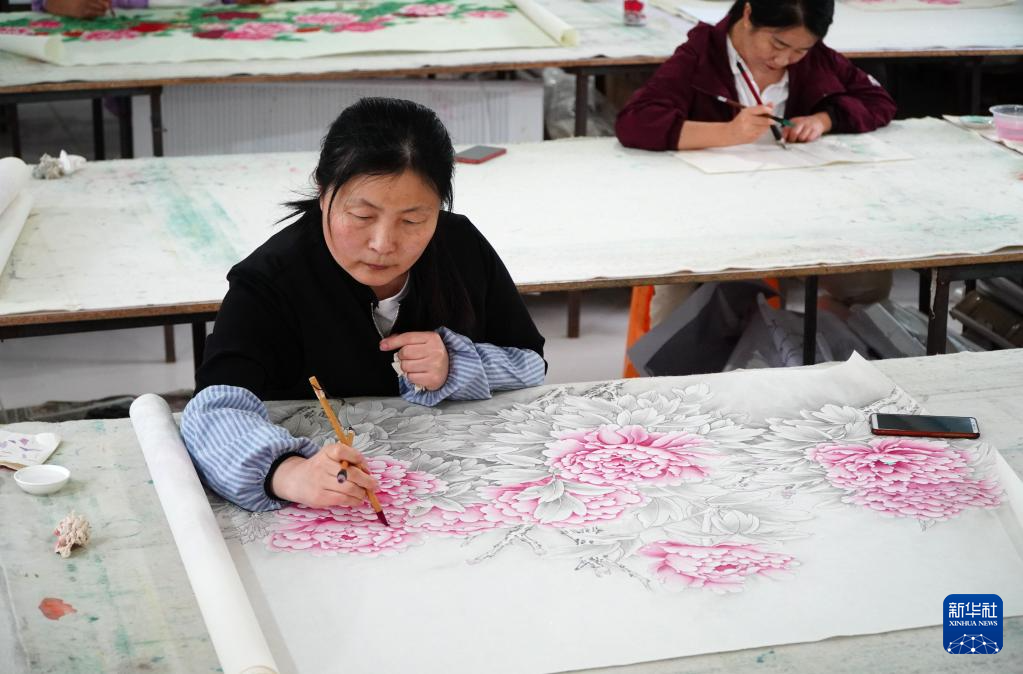 近年来,山东省巨野县大力发展工笔牡丹画产业,带动农民增收致富,助力乡村振兴。目前,全县已有绘画专业镇4个,绘画专业村50个,基层画院44家,培养农民画师8000多名。