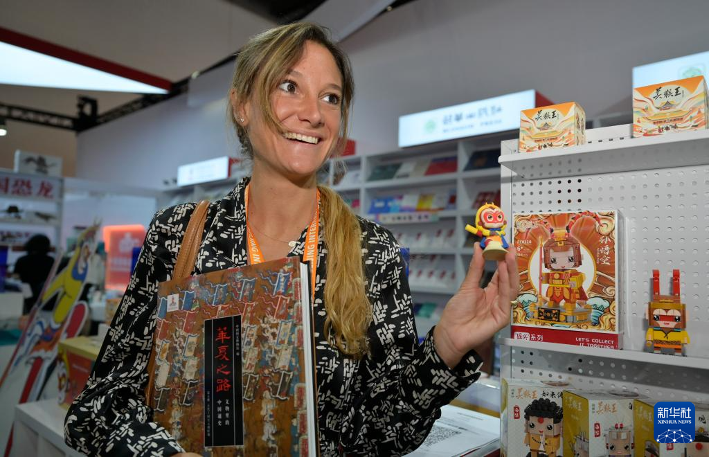 6月16日,在北京举行的第29届北京国际图书博览会上,外国出版商观看“美猴王系列”文创产品。