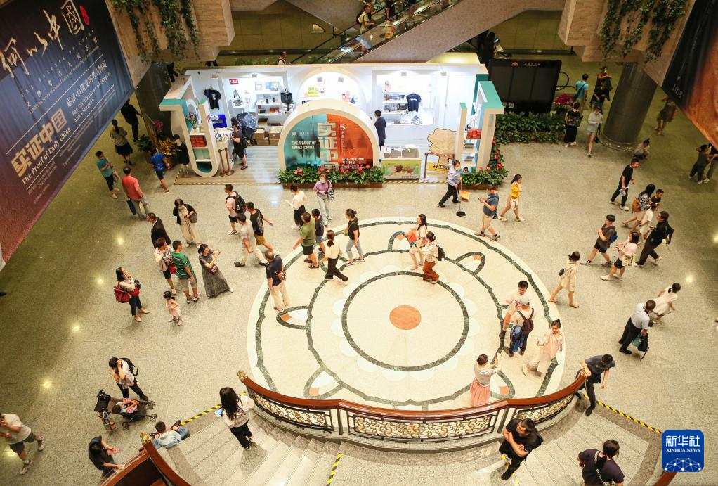 7月14日晚,小朋友在上海博物馆的展厅内收集印章。