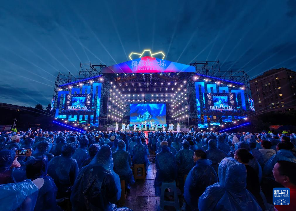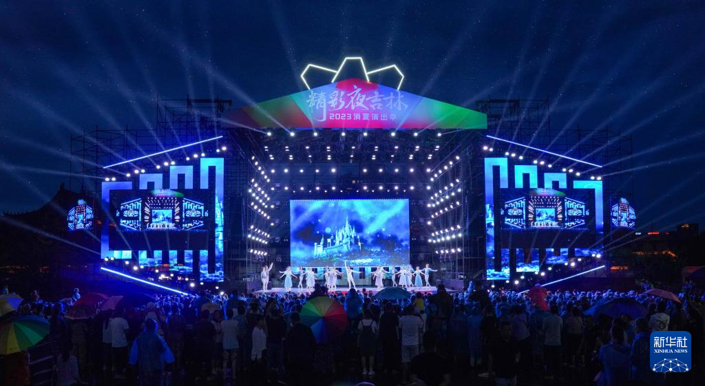 7月14日晚,俄罗斯马里埃尔国家模范歌剧舞剧院芭蕾舞剧《天鹅湖》在吉林长春文庙广场上演,吸引大批观众冒雨前来观看。