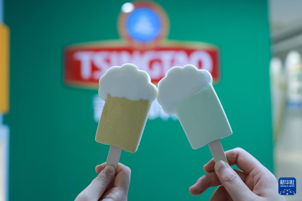 7月21日在山东省青岛市李沧区第二啤酒厂纯生之旅博物馆拍摄的啤酒造型文创雪糕。