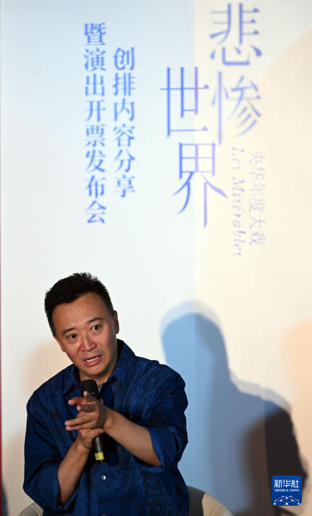 7月25日,话剧《悲惨世界》监制王可然出席发布会。