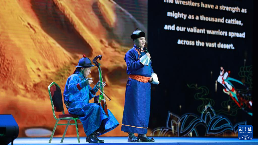 9月6日,蒙古国歌手在《相约敦煌》文艺晚会上进行演唱。