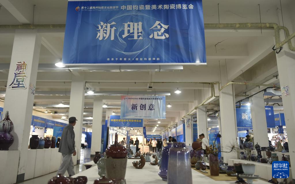 9月25日在禹州市神垕钧瓷工业文化园内拍摄的中国钧瓷暨美术陶瓷博览会现场。