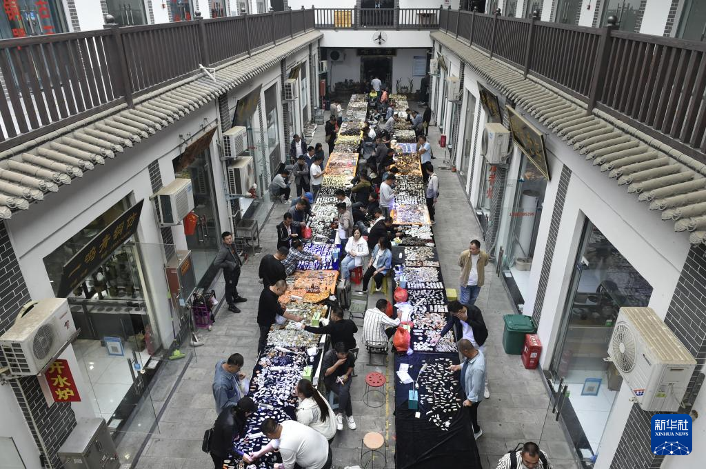 9月25日在禹州市神垕钧瓷工业文化园拍摄的古玩市场。