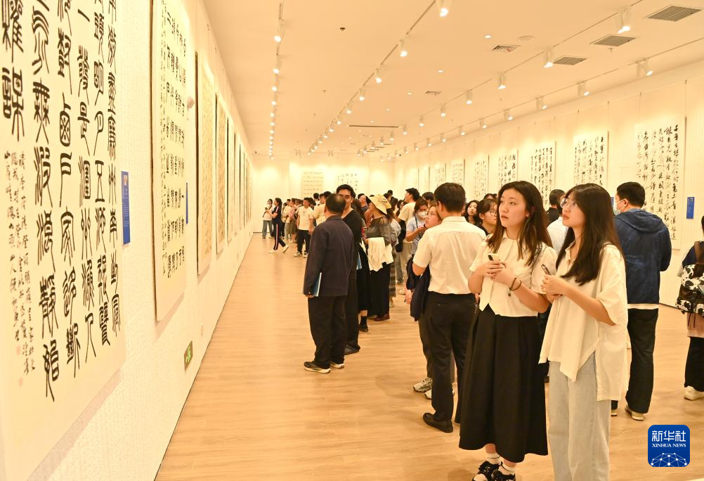 11月27日,观众在参观中国书法兰亭奖获奖名家作品(北海)邀请展。