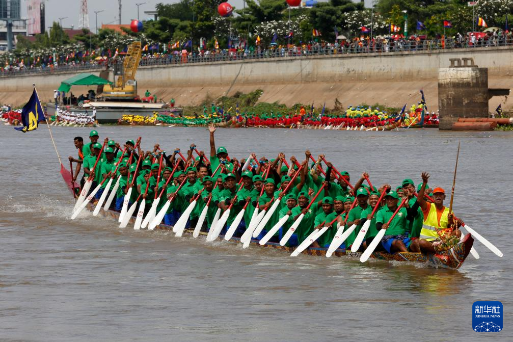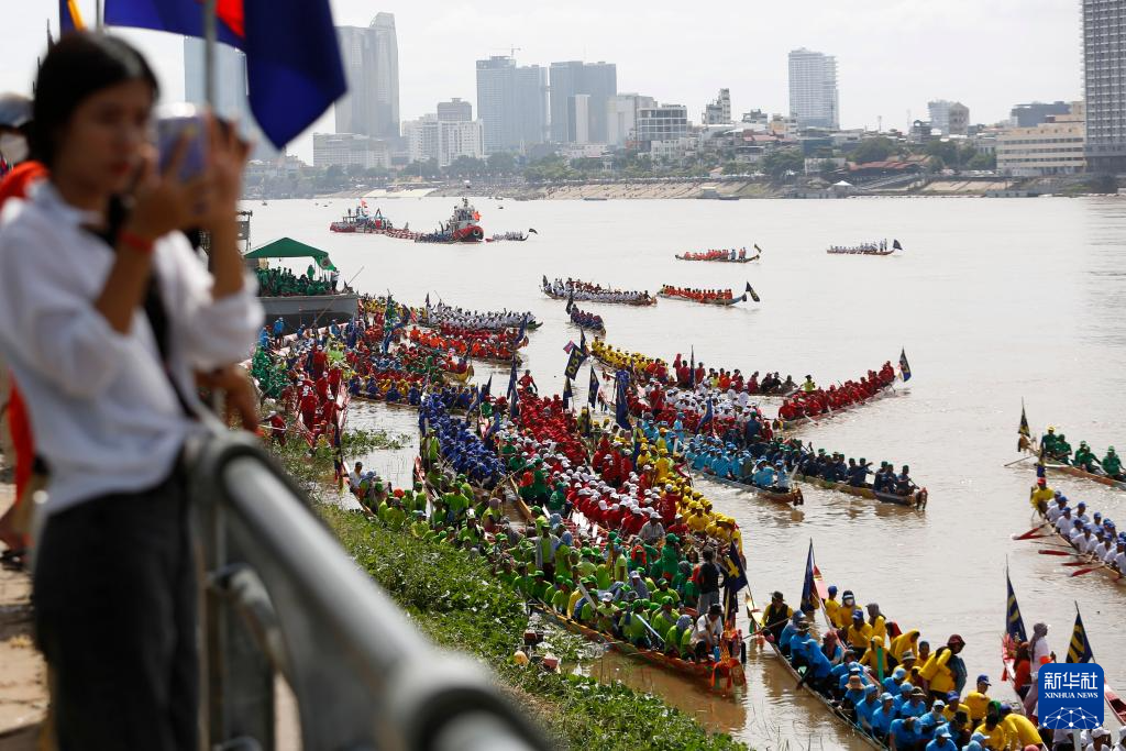 11月26日,在柬埔寨首都金边,人们参加赛龙舟活动。