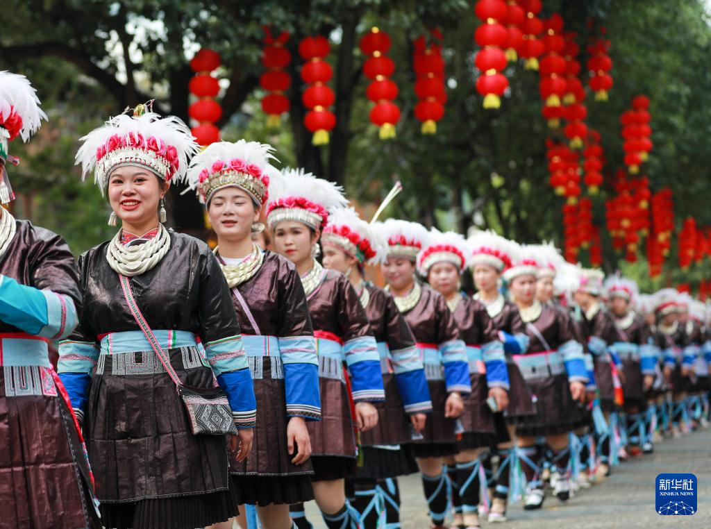 12月15日,在贵州省黎平县肇兴侗寨,侗族群众身着节日盛装参加侗年巡游活动。