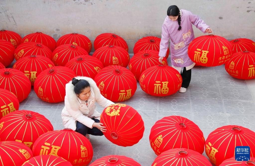 新年临近,河北省邢台市南和区的灯笼作坊加紧制做红灯笼,供应节日市场。