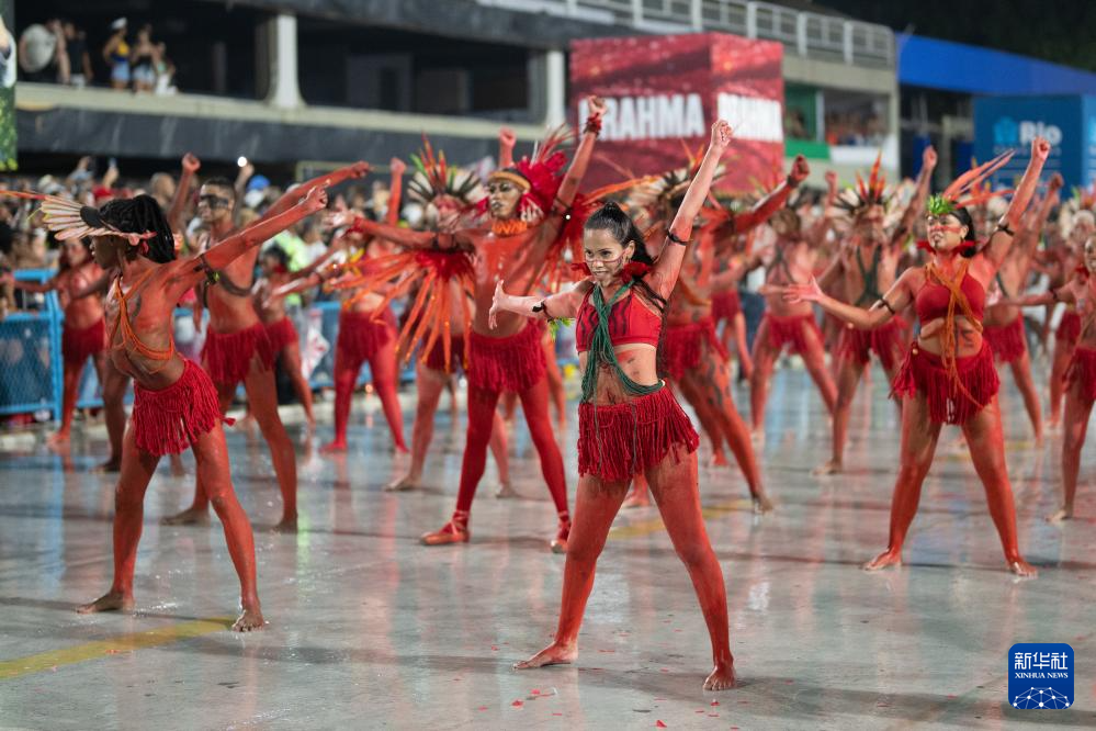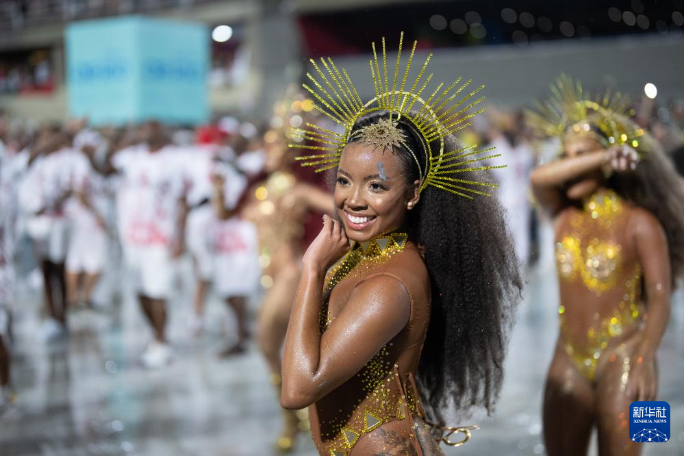 当日,巴西里约热内卢狂欢节桑巴大道举行狂欢节彩排活动,为即将到来的节日庆典预热。