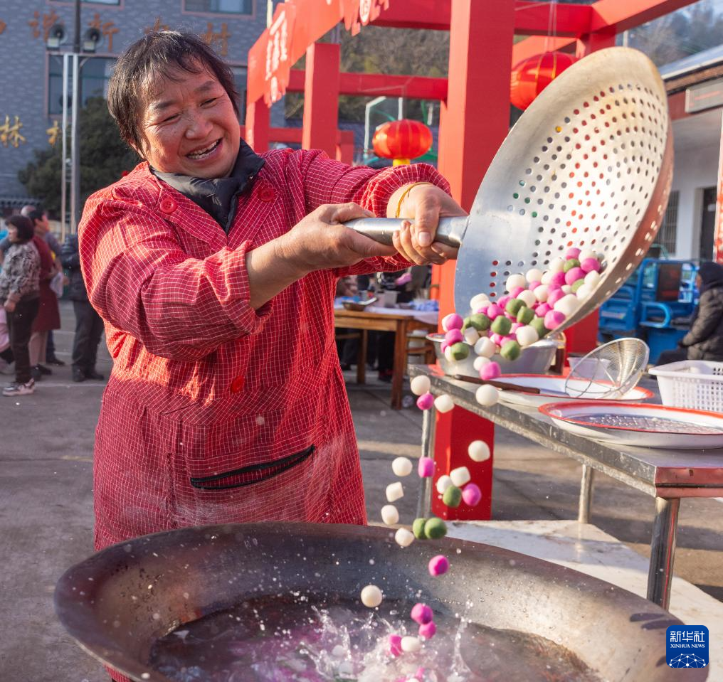 1月31日,浙江省诸暨市东和乡大林村的村民在迎新春活动中煮汤圆。